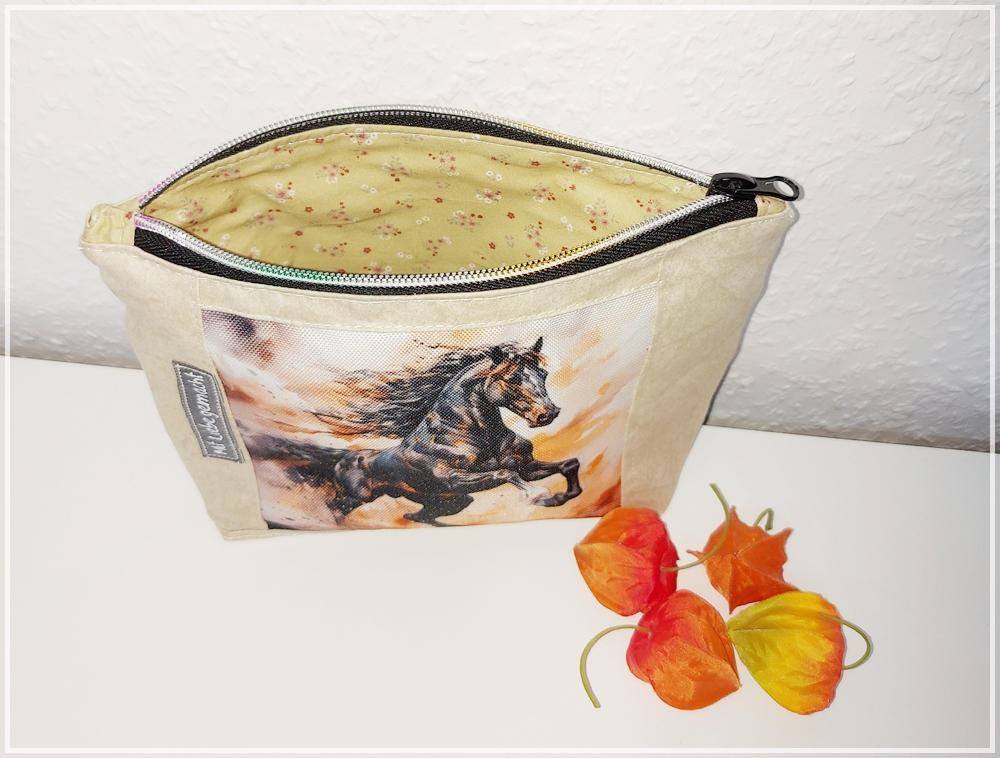 Produktinformationen "Kosmetiktasche mit schwarzem Hengst"