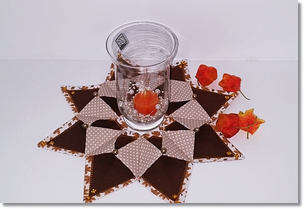 Diese hübschen Sterne sind mit Perlen und Halbsteinen verziert. In der Mitte hast du die Möglichkeit, eine Kerze, eine Schale oder Ähnliches zu platzieren.